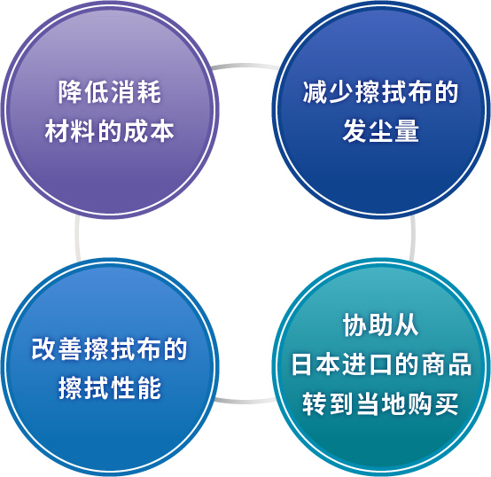 作(zuò)爲無塵室用(yòng)品供應商,以在日本國内銷售40多年的BEMCOT®爲中心,生産銷售各種各樣的商品。